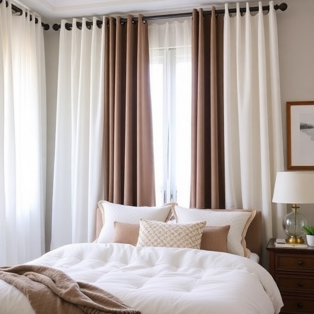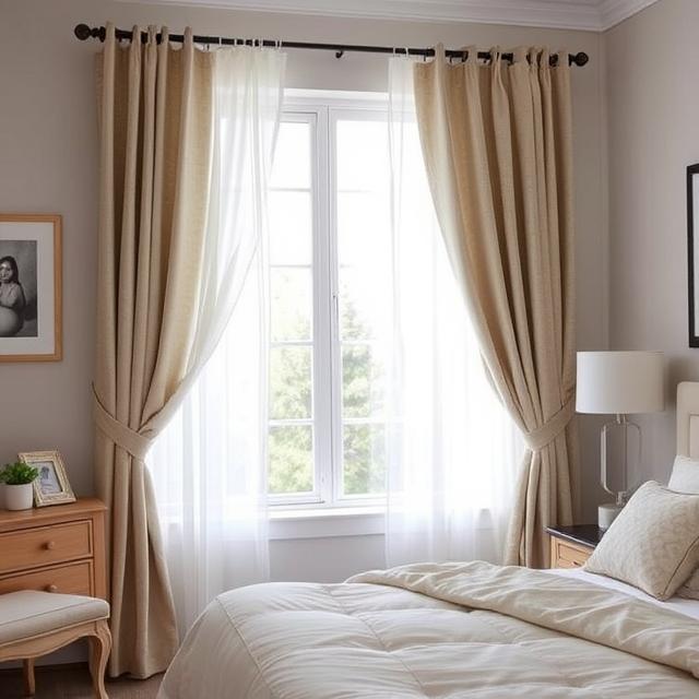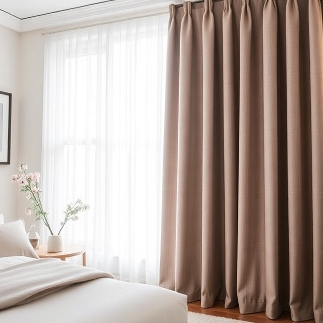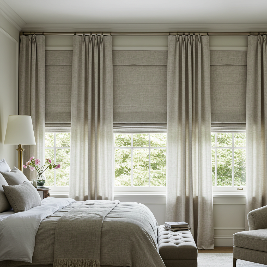 This combination gives you maximum control over brightness while adding depth to your windows. It’s a tailored look perfect for bedrooms aiming for both sophistication and function.