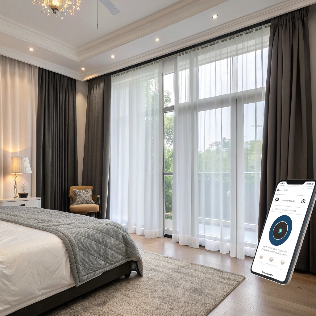 For modern bedrooms, motorized curtains add both convenience and light control. Operated by remote control or smartphone apps, they let you adjust light levels without leaving bed. They’re particularly useful in rooms with tall or hard-to-reach windows.