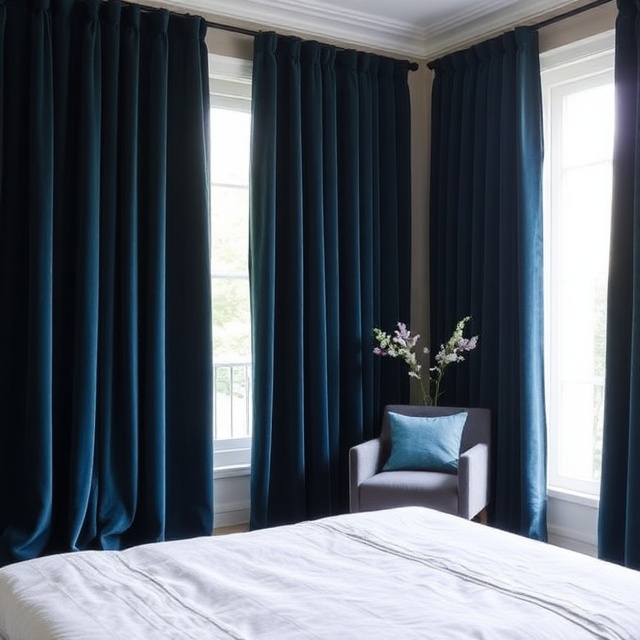 Velvet isn’t just about luxury; it’s also one of the best fabrics for blocking light. Its dense weave naturally prevents sunlight from seeping in, while the rich texture adds a glamorous, cocoon-like feel to bedrooms.