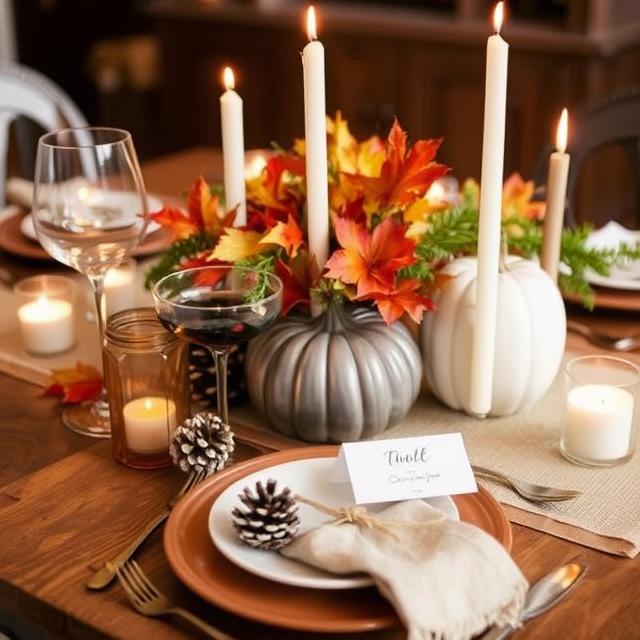 Use natural elements like pinecones, colorful leaves, and small pumpkins paired with candles. Consider repurposing items you already own, such as scarves or jars, for added charm at no extra cost.