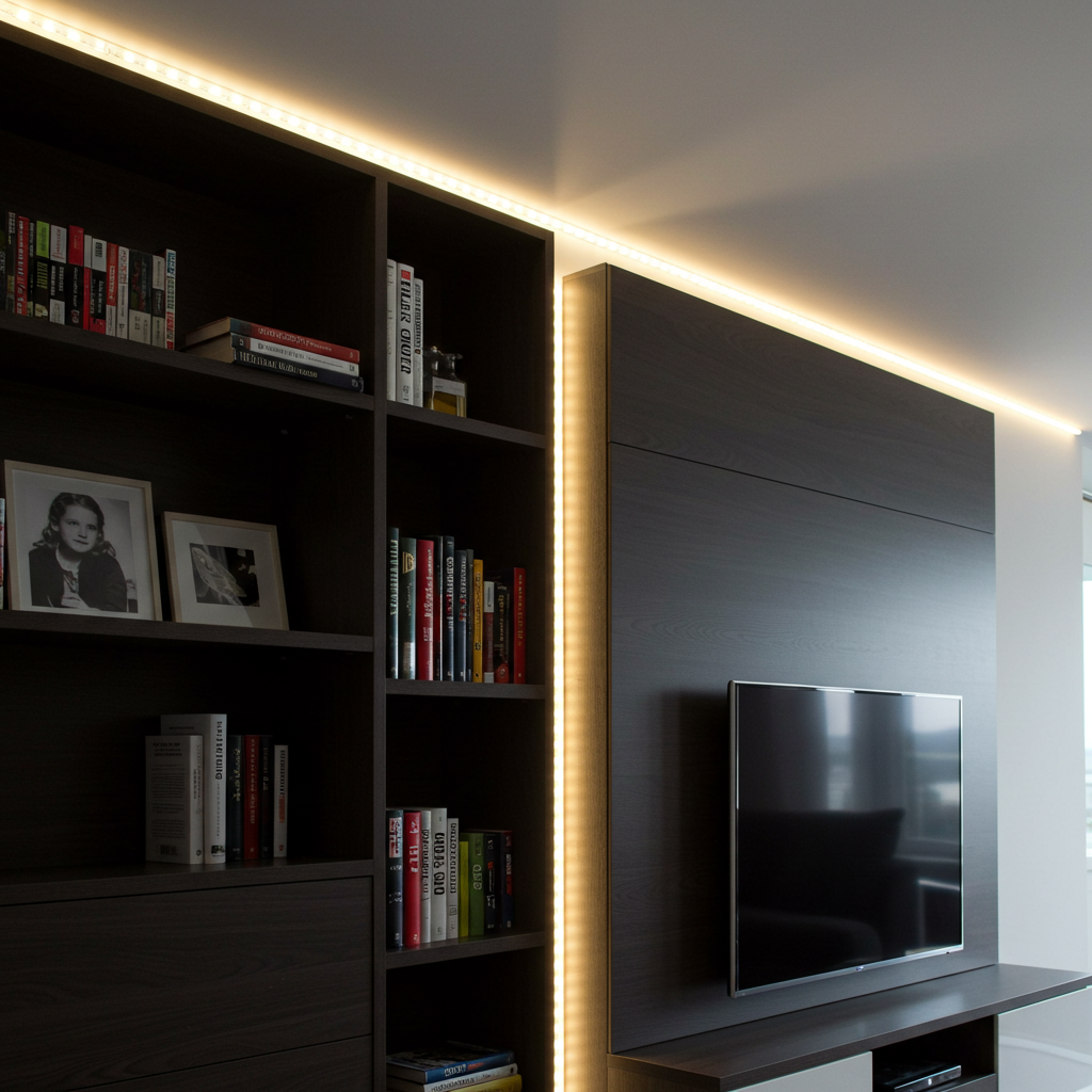 LED strips are budget-friendly and versatile. Install them under shelves, behind your TV, or along the ceiling for subtle illumination. They come in different colors, allowing you to create fun, dynamic moods. Plus, they’re easy to install without professional help.