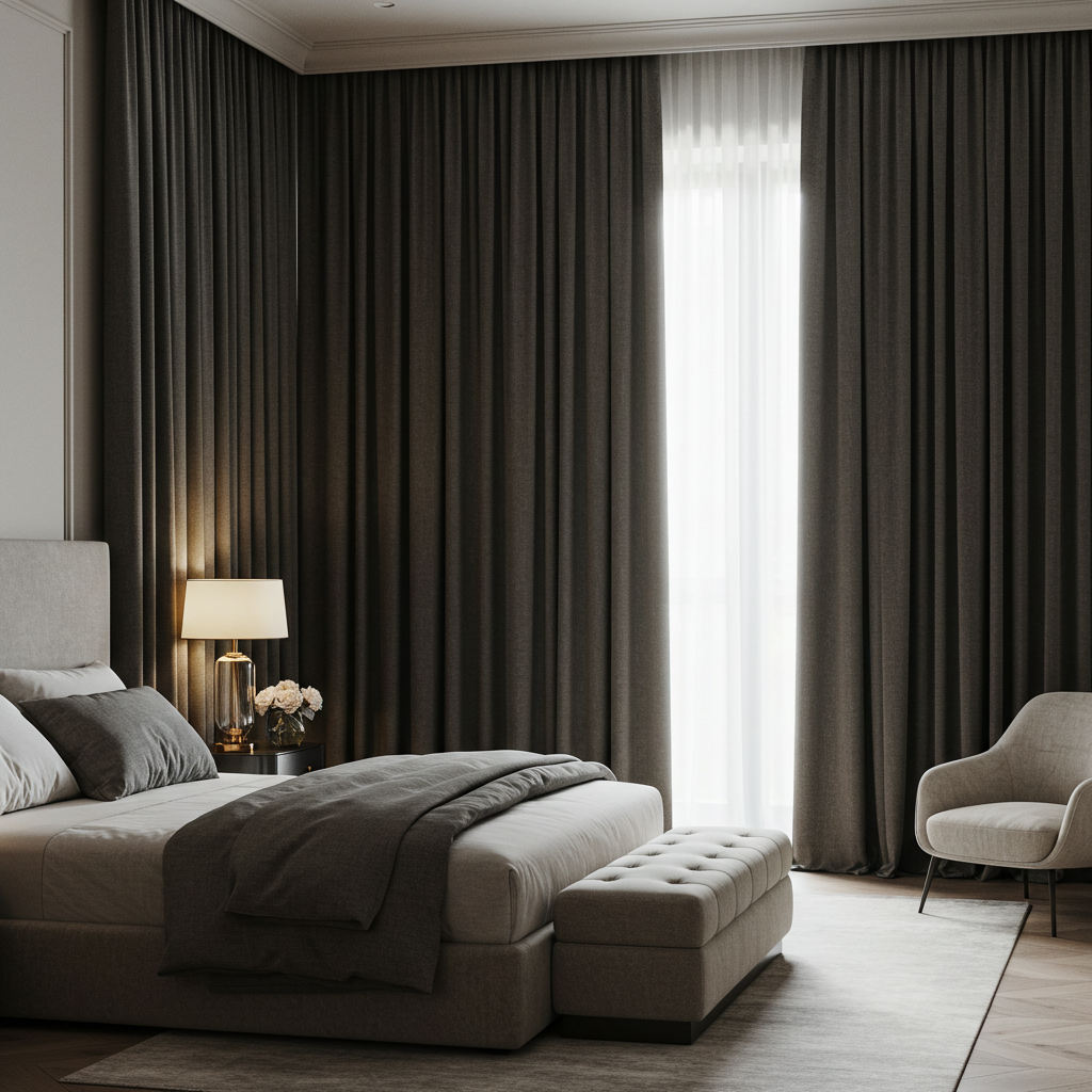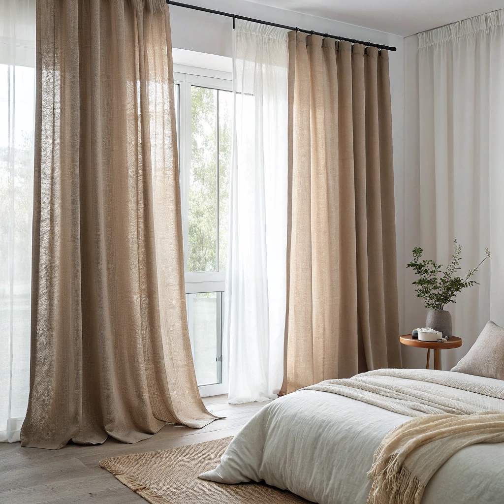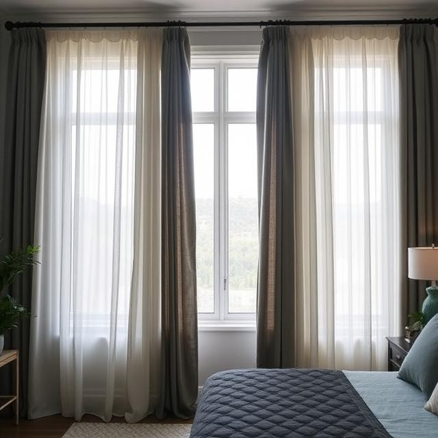 Modern bedrooms often feature ivory or gray sheers paired with darker drapes for contrast. This layered look adds sophistication and texture, turning windows into a standout feature.
