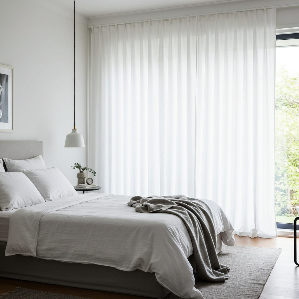 Minimalist white curtains remain a staple in modern interiors thanks to their clean, bright aesthetic. They reflect natural light, making rooms feel larger and airier while blending seamlessly with any color palette.