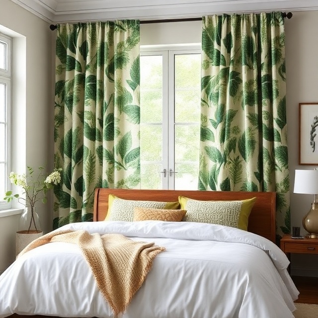 Either way, nature-inspired curtains ground your space and add freshness. More examples can be found in biophilic bedroom design.