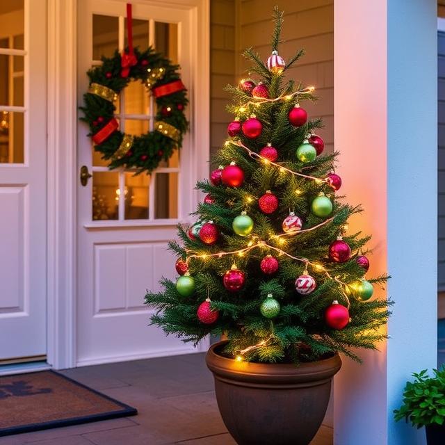 • Use a potted evergreen decorated with waterproof ornaments.