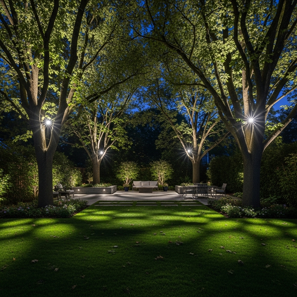 One of the most natural ways to illuminate a space is to mimic the soft, filtered light of a full moon. This is achieved by placing fixtures high up in the canopy of mature trees, angled downward through the branches.