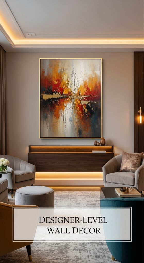 Abstract art blends easily with any décor because it focuses on shapes, tone, and movement rather than specific subjects. Choose pieces that pull in accent colors from your furniture or rugs to create a cohesive palette.